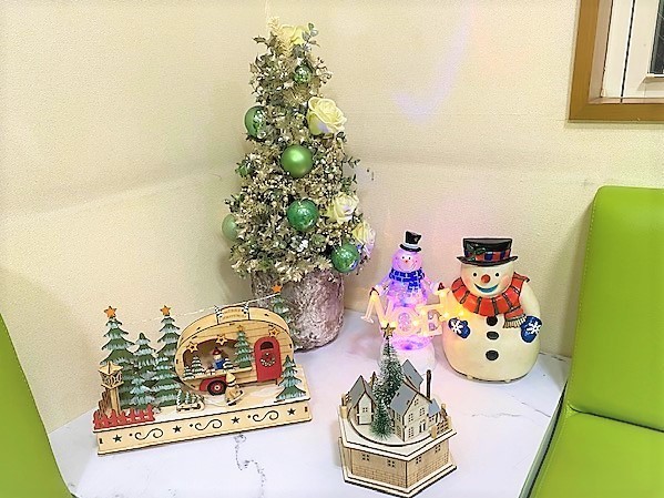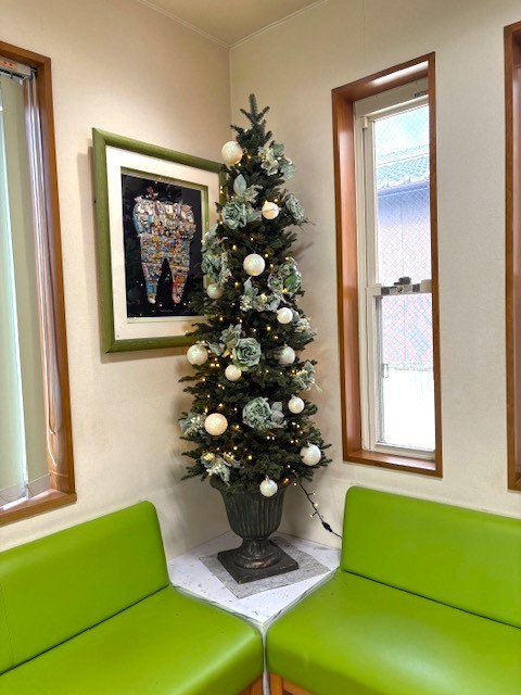 待合室の一角にクリスマスツリーを飾りました。