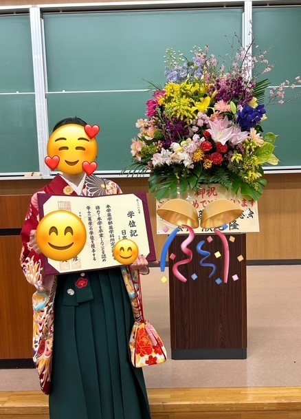 分野は違いますが同じ医療人としてしっかりと人の役に立ってほしいものです。卒業式ではたくさんの友達に囲まれて、楽しい大学生活を送れたんだなとうれしく思いました。