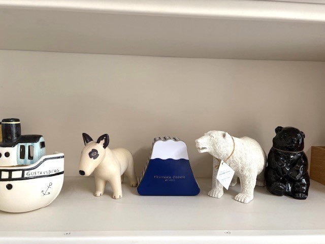 非常勤の先生が昔うちでバイトをしてもらった先生たちと富士山登山に行かれたそうでお土産をもらいました。そのクッキーの缶がかわいかったので我が家の置き物たちの中に仲間入りしました。