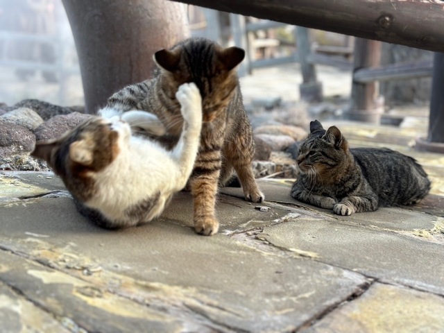 たくさんの写真を送ってきましたがリラックスし過ぎでお見せできるのがこの写真(温泉地に住んでいる猫)だけです。