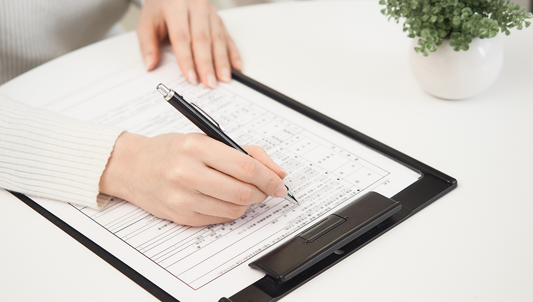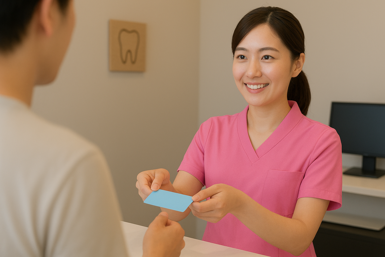ご来院されましたら、受付へお越しください。保険証またはマイナンバーカードのご提示と問診票への記入をお願いします。再診の患者さまは診察券のご提示のみで結構です。